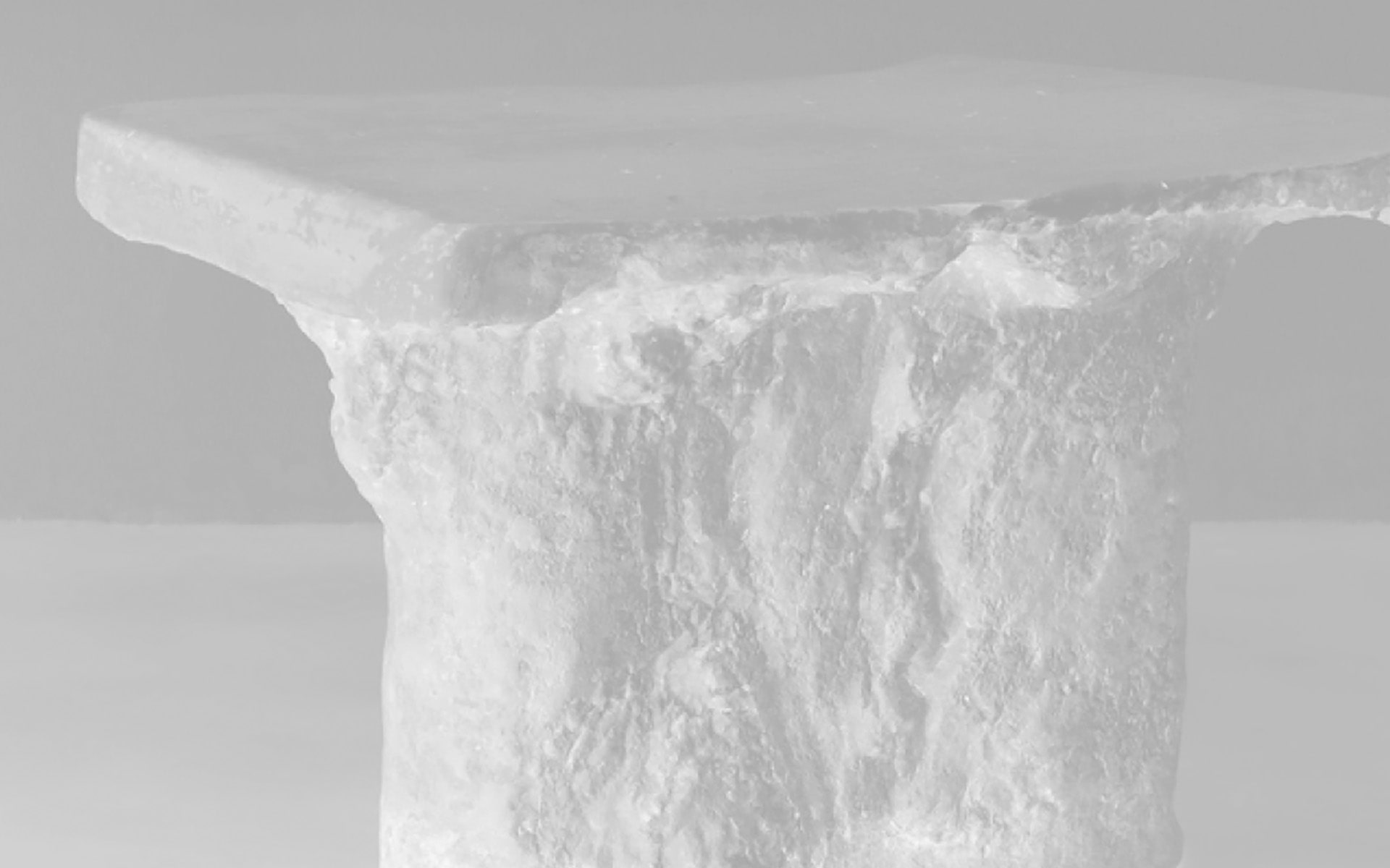 The continuation of an exploration begun with the only chair from the original series Also produced with reclaimed materials from construction sites, the extruded polystyrene is now stacked and texturized through cuts for creating a structure, while left un-intervened for the sitting and backrest surfaces. Assembled with PUR glue and finished with putty, projected PUR and a water based protective lacquer. 2025. Photography: Grimalt de Blanch/ Sergio Penas.