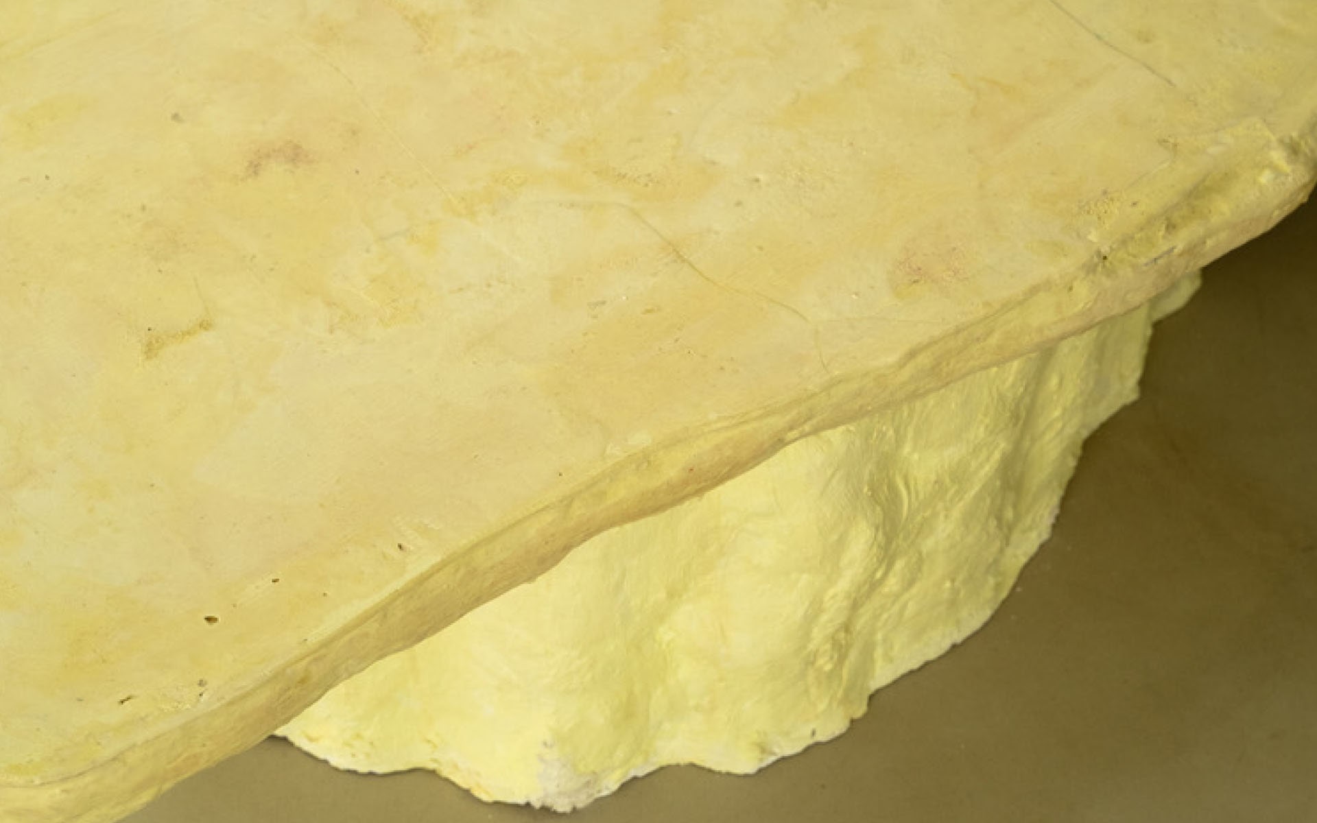 Esparto grass, wood residues, lime, gypsum, hardener, pigment, and sand. This work is part of a series of formal experiments with natural fibers leftovers, exploring their structural and aesthetic potential through combinations with mineral-based binders and surface treatments. 2023. Photography: Santino La Morte. Part of “Experimentos para una exposicion”, solo show in Taca.